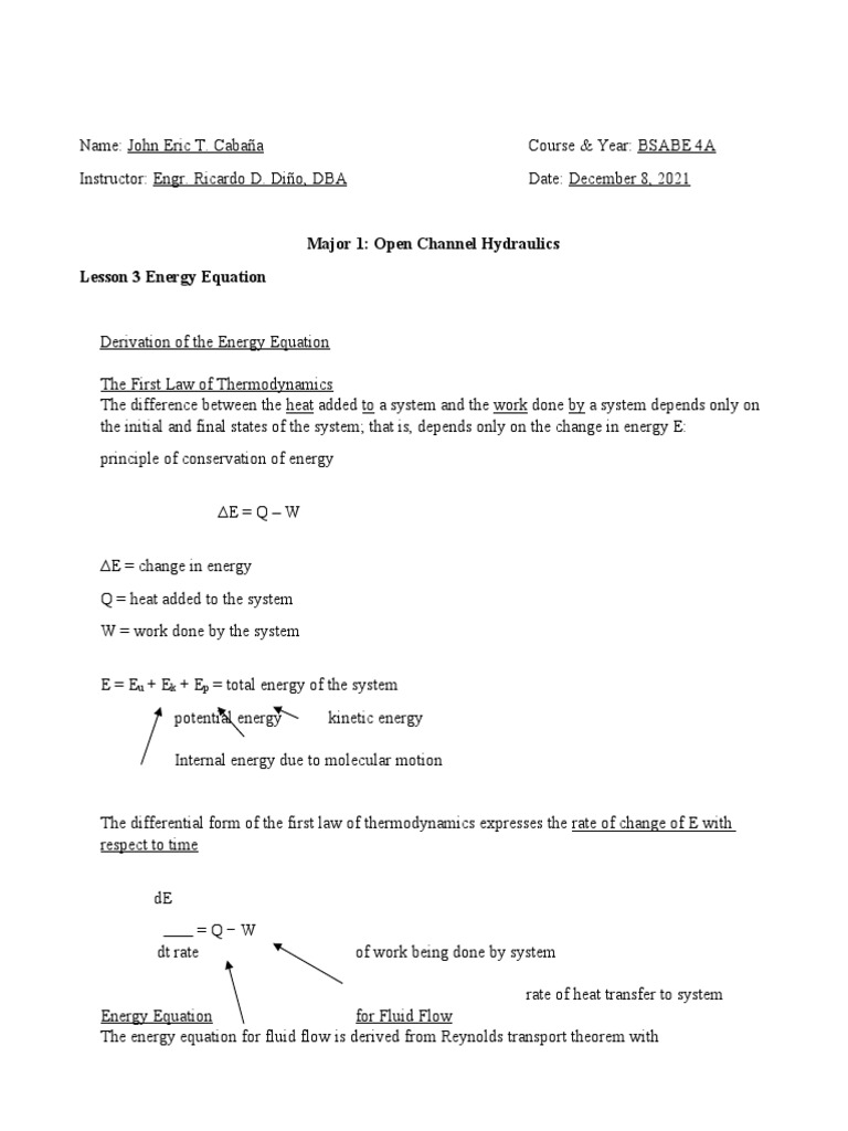 ReportOpenHydraulicsEnergy Equation PDF Heat Fluid Dynamics